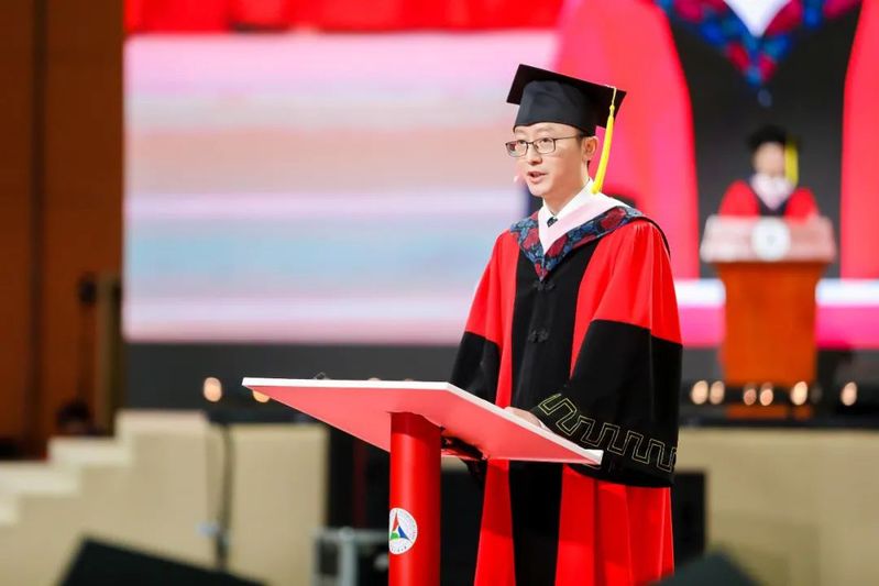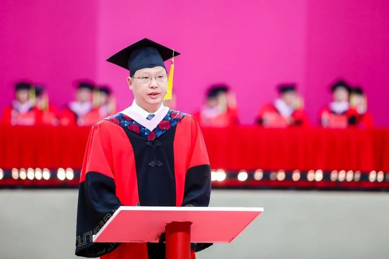 在热烈的掌声中,党委书记、校长廖祥忠发表了题为《同学们:人类社会正进入巨变期,你准备好了吗?》的讲话,向圆满完成学业取得学位的4502名毕业生表示热烈祝贺,向孜孜不倦的老师,向含辛茹苦的家长,向热切关心学生成长的社会各界致以敬意和感谢,告诫毕业生们将“小我融入大我”,在真刀真枪的实干中开启人生新的征程。廖校长以中国特色社会主义取得的伟大成就、抗击新冠肺炎疫情取得的重大胜利、中华优秀传统文化的深厚滋养等告诫同学们,一定要相信我们所走的路是历史的必然选择,一定要相信中华优秀传统文化的永恒魅力,做更有底气、更有骨气、更有志气的中国人。