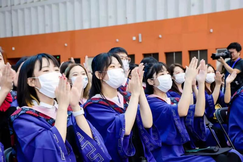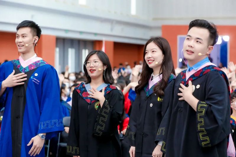 全体校领导,校学位评定委员会委员,2021届毕业研究生所属学部、学院领导为获得硕士学位、学士学位的毕业生拨穗、颁发学位证书并合影留念。