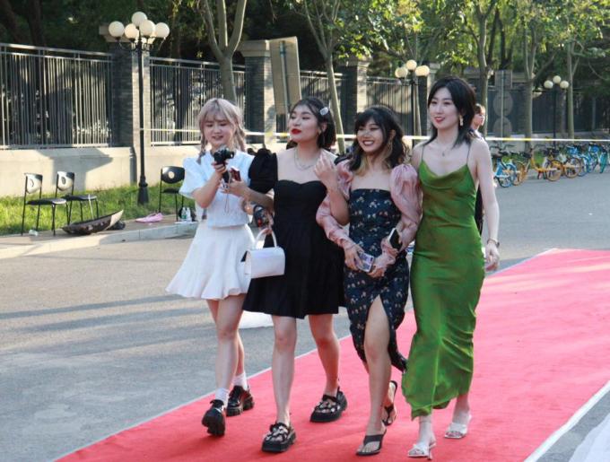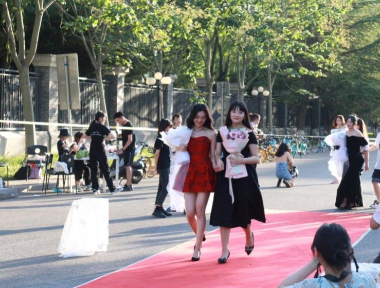 在晚会正式开始之前,学院还举行了活泼浪漫的走红毯仪式,下午三点,仪式正式开始,在老师同学、朋友亲人的祝福下, 2021届全体毕业生和部分2020届毕业生依次踏上位于国重大楼前的红毯,以最好的精神面貌向学校、学院告别。红毯现场还设置了留言板,毕业生们在此留下对青春和未来的美好祝愿并签名合照留念。