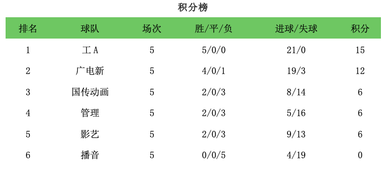 经过层层比拼,6月19日,在烈日与明月的陪伴下,播音队与管理队、影艺队与国传动画队、工A队与广电新队三场比赛分别进行,经过激烈比拼后,播音队三比一战胜管理队,影艺队二比一战胜国传动画队,工A队二比零战胜广电新队。