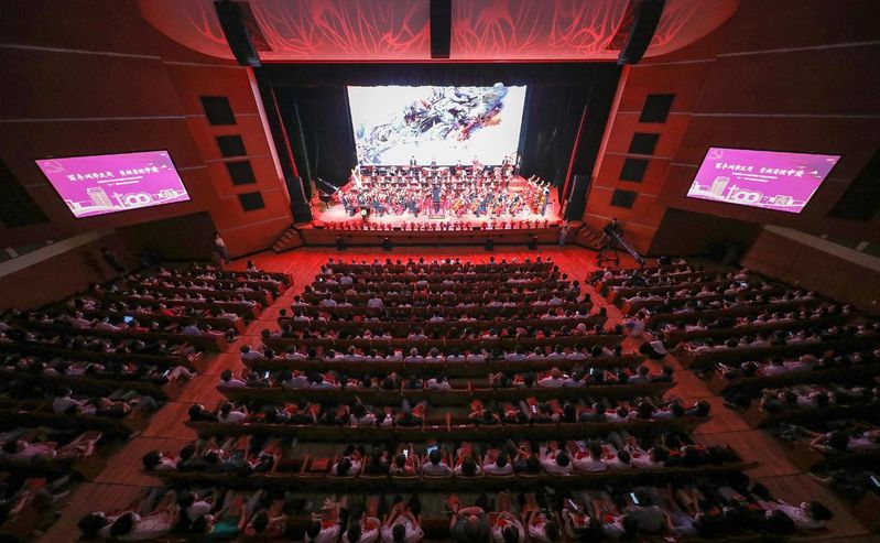 国家一级指挥洪侠执棒,中国传媒大学青年爱乐乐团与师鹏、田佳鑫等我校教师、业界导师联袂表演,用《人民万岁》《红色娘子军》《北京喜讯到边寨》《黄河》等不同时期的经典曲目礼赞百年大党,为现场观众呈现了一场高水准的红色主题音乐会。