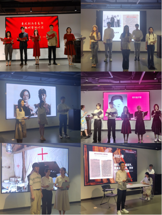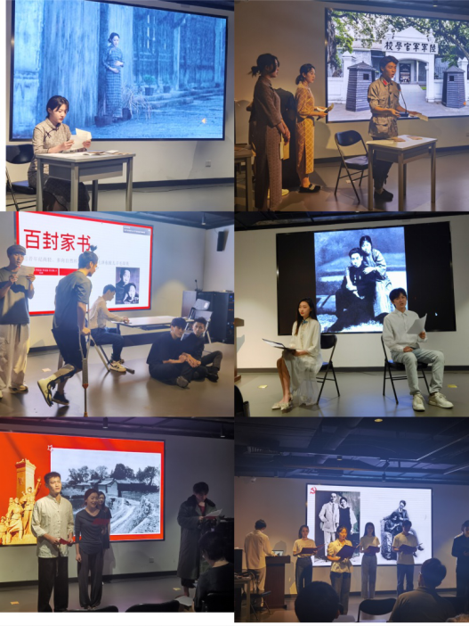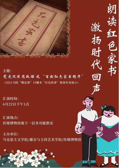 (通讯员 杨倩 摄影 张鑫)6月22日下午,马克思主义学院与播音主持艺术学院在2019级播音与主持艺术专业本科生《毛泽东思想和中国特色社会主义理论体系概论》课(以下简称“《概论》课”)上共同开展了“朗读红色家书、激扬时代回声”党史沉浸汇演,19播本全体同学分为19个小组在传媒博物馆多功能教室共同呈现了一台精彩感人的沉浸思政课,以此为建党百年添彩。