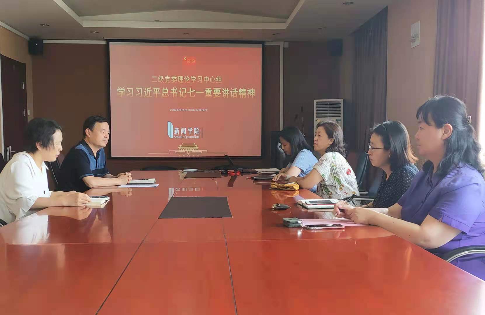(通讯员 南秀渊)7月2日下午,新闻学院二级党委理论学习中心组在东配楼509会议室集体学习习近平总书记七一重要讲话精神。学院党委书记陈作平同志主持学习会。