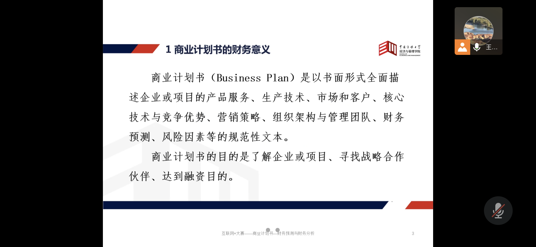 培训过程中,王晓艳教授从商业计划书的财务意义、财务预测与财务分析原则、财务预测内容与方法、财务预测与财务分析结果呈现几个方面,为参赛项目负责人讲授财务预测与分析相关知识,并为部分项目进行个性化指导。