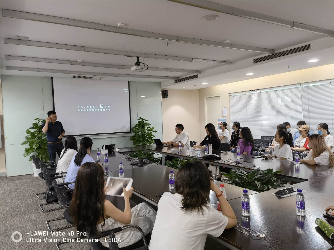 参观结束后,座谈会正式开始。小度营销专家贾甲老师基于现实生活中的众多场景 ,首先提出了小度音响箱的优势,基于自然语言进行分析处理的AI,能够极大地便利人们的生活,基于特殊的人群,例如老年人、盲人等受众推出了AI助盲、长辈模式、儿童教育等多种模式,致力于科技为更好。其次,介绍了小度优势产业小度智能屏,其将于后疫情时代拥有更大潜质。