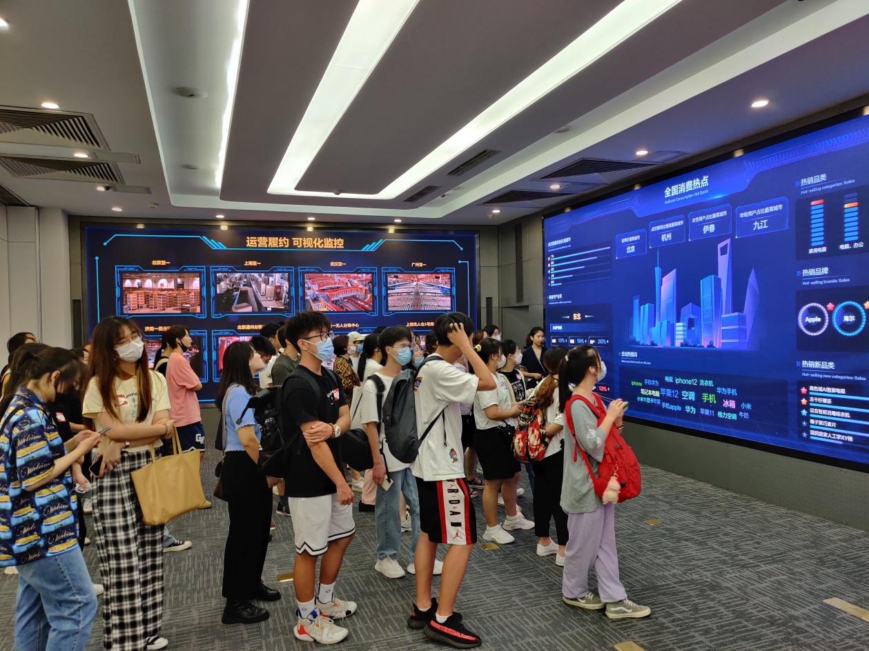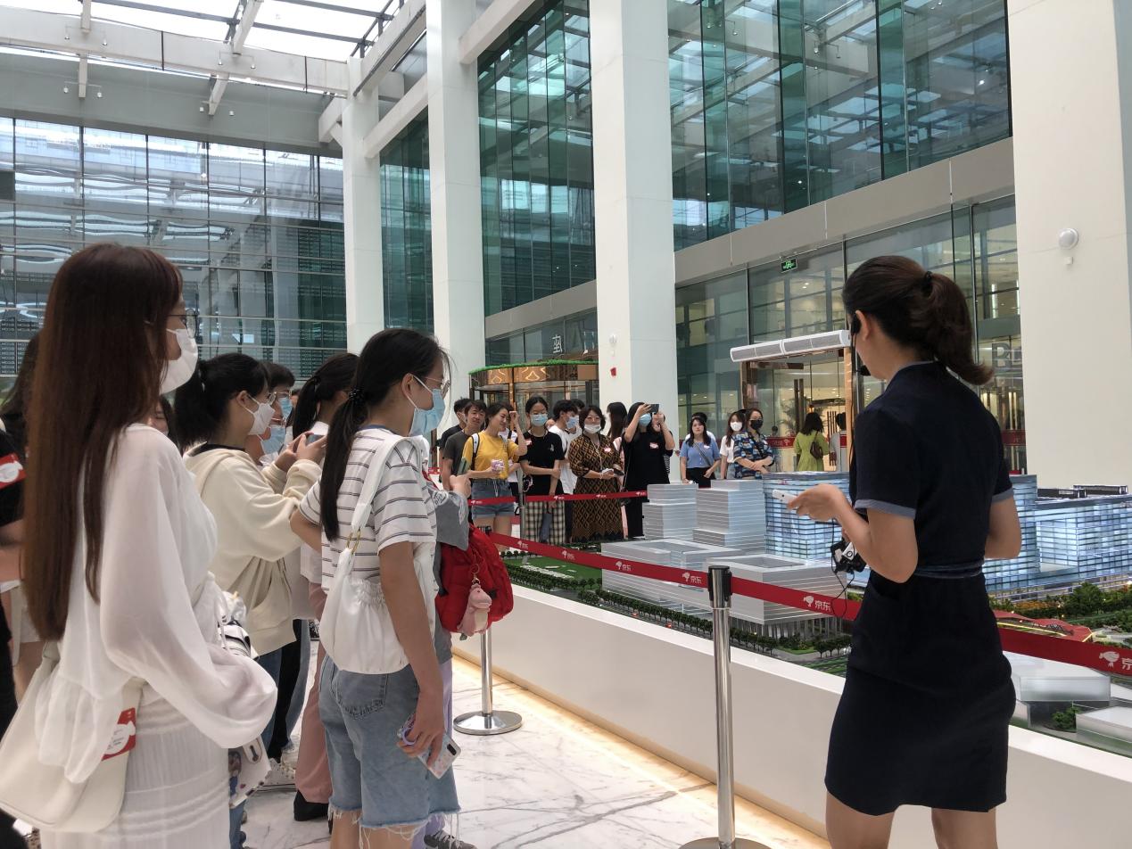 在京东总部大楼,讲解员为同学们详细介绍了京东总部智能而便利的工作环境,有根据货架上商品重量变化来计算客人购买物品的智能无人商店,通过大数据处理筛选出优质商品的便利店,还有便捷的快递服务等等。讲解员带领同学们漫步在京东工作大楼内部,同学们能够切身体验到世界五百强公司的氛围。