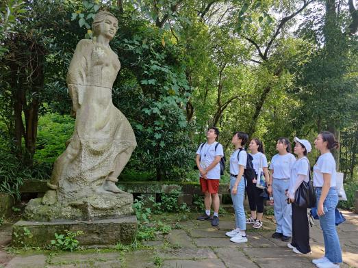 7月19日至7月24日,由戏剧影视学院文艺系副主任、副教授沈皛带队的川渝线暑实分队赴重庆、四川等地开展实践,围绕红色经典川剧《江姐》进行调研。分队成员以剧中人物“江姐”的故事为核心线索,先后前往重庆市川剧院、红岩革命纪念馆、渣滓洞、白公馆、自贡市江姐故居等场馆进行沉浸式党史研学,通过对话式人物访谈、演绎式视频记录等多种方式,结合地方戏曲艺术的独特魅力探索“红岩精神”的艺术化表达和大众化传播路径。在重庆川剧院,队员们与川剧《江姐》老、中、青三代演职人员进行采访交流;在江姐故居,团队创新性地以“快闪”形式深情朗诵《红梅赞》,红岩精神世代传,片片丹心向阳开。大家身体力行参与其中,更深受感动,红岩精神永励中华儿女。