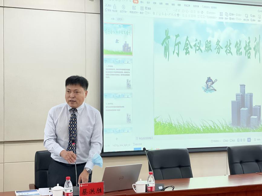 (通讯员 洪润娜)为进一步提升后勤会务人员、公寓管理员业务素质,提高服务水平,8月25日,后勤保障处综合办公室组织开展日常接待及会议服务专题培训。后勤保障处留学生公寓与教室场馆服务中心、学生公寓服务中心近50人参加了培训。