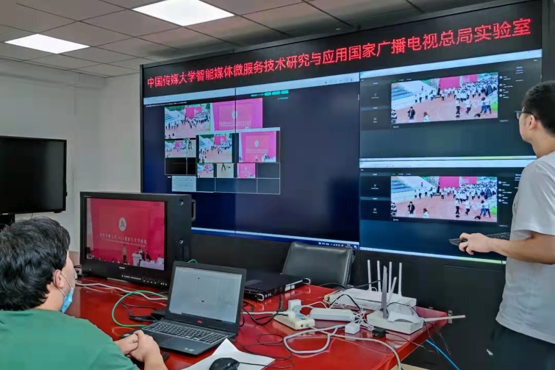 (通讯员 赵薇)9月12日,中国传媒大学2021级新生开学典礼举行。学校智能媒体微服务技术研究与应用国家广播电视总局实验室(以下简称“实验室”)及共建单位中国移动北京公司、杭州广电云、天津德力仪器设备有限公司等,在典礼现场成功完成了5G网络环境下云转播全链路首次技术测试。
