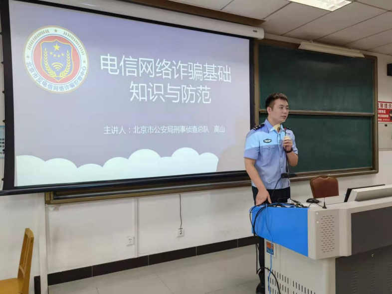 活动开始,高山警官为同学们详细介绍了电信诈骗的基本概念,具体讲解了电信诈骗发生的原因。他强调,电信诈骗具有覆盖范围广、手段更新速度快、诈骗集团反侦察能力强、跨国跨境犯罪突出等特点,并总结了真实案例中常见的受害者心态,以此告诫同学们务必对电信诈骗加以警惕。