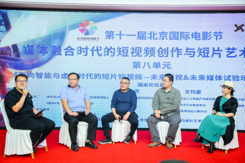 “面向智能与虚拟时代的短片短视频”单元由短片短视频艺委会副主任、北京邮电大学数字媒体与设计艺术学院副院长贾云鹏主持。IMSOCIAL加速器ALAB新内容实验室创始人王薇发表了主题演讲。在圆桌论坛中,北京电影学院美术学院教授、中国电影美术学会视效委员会主任刘晓清、清华大学经管虚拟现实及人工智能产业研究院执行院长文钧雷、中国传媒大学动画与数字艺术学院数字媒体艺术系主任崔蕴鹏和王薇女士共同探讨了短片短视频作为未来影像试验场的可能性,提出了智能与虚拟时代短片短视频创作的可行性方案。