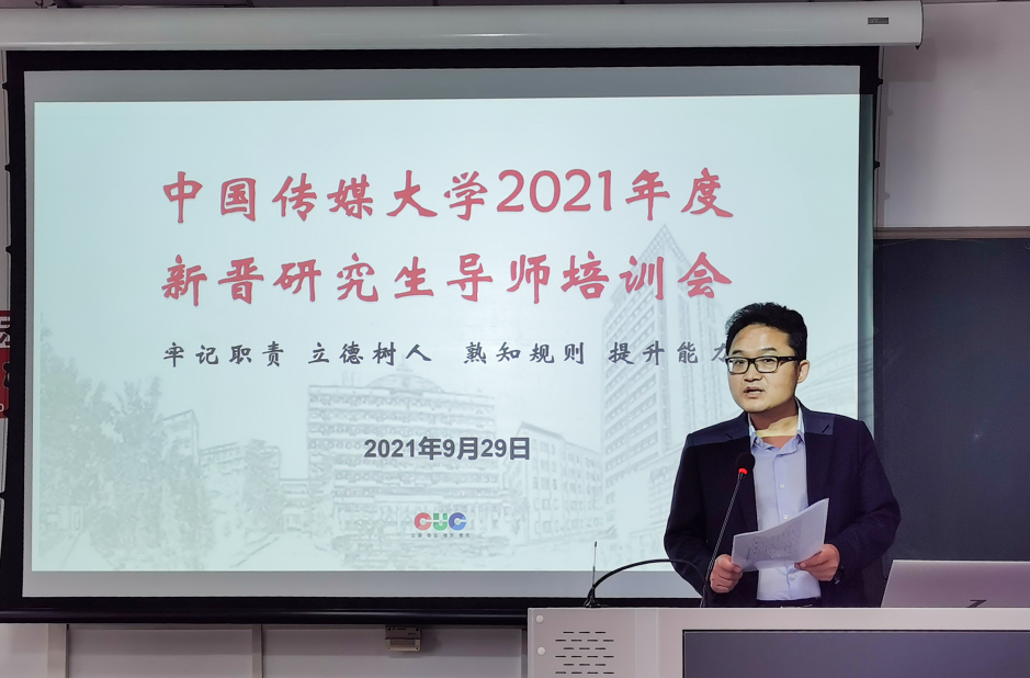 党委教师工作部部长王晓丽就高校教师师德师风建设相关规定与新晋导师进行了分享。王晓丽部长引用《中华人民共和国教师法》《高等学校教师职业道德规范》《教育部关于高校教师师德失范行为处理的指导意见》《教育部关于全面落实研究生导师立德树人职责的意见》以及《中国传媒大学师德考核实施办法》等多份文件,清晰明确地强调了师德师风问题的重要性。