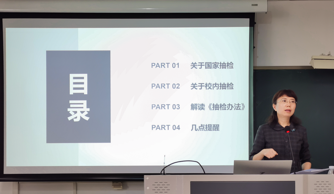 教育质量评估与督导处处长王静冬介绍了我校关于研究生学位论文抽检情况,对于国家抽检、校内抽检等相关流程进行了详细讲述,并就《抽检办法》进行详尽解读。她提醒导师们严把学位论文质量关,并从教育质量评估的角度向新晋导师们提出了建议。