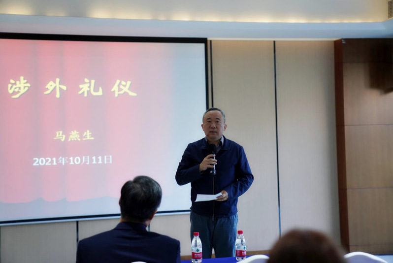 讲座中,马燕生先生从多年教育外事工作和国际组织工作的实践出发,介绍了涉外礼仪的内涵,阐释了涉外礼仪所要遵循的六项基本原则,对涉外礼仪的注意事项和正确做法进行了详细介绍与解读。马燕生先生希望同学们遵循“从修身做起、从平时做起、从小事做起、从对内做起、从自己做起”的原则,在跨文化沟通与合作过程中学会更好地做人做事,在打好专业学习基础的同时全面提升自身素养,成长为专业与文化兼修、家国情怀与国际视野并重的复合型人才。