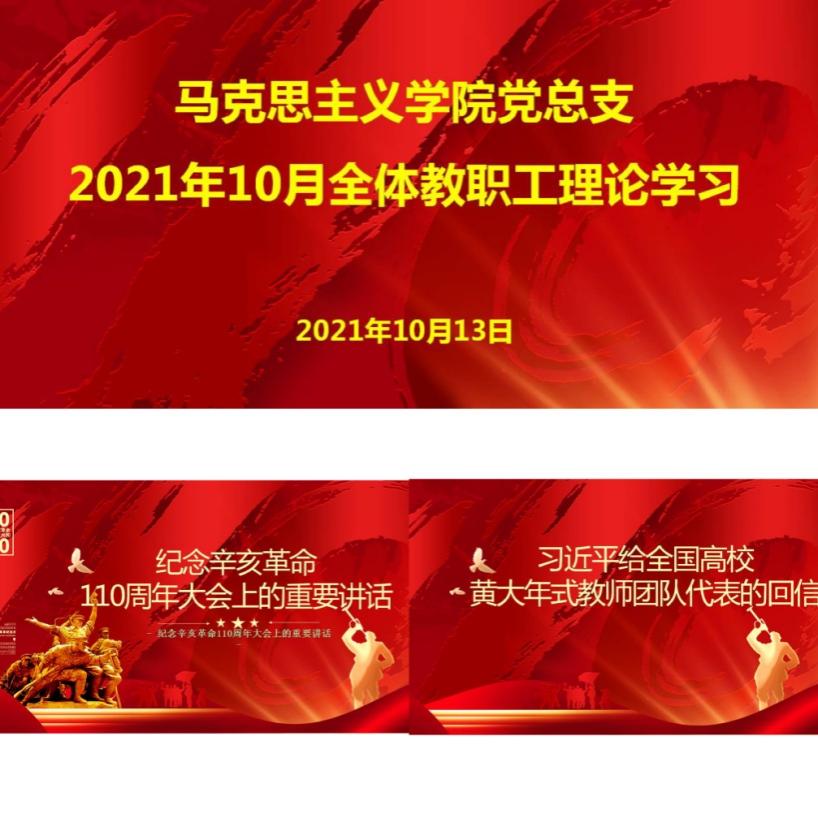 (通讯员 孙靖)2021年10月13日下午,马克思主义学院党总支组织开展了10月份教职工政治理论集体学习,本次学习由学院党总支书记傅楠领学,学院全体教师参加。