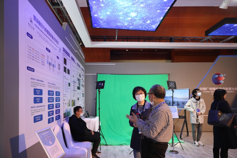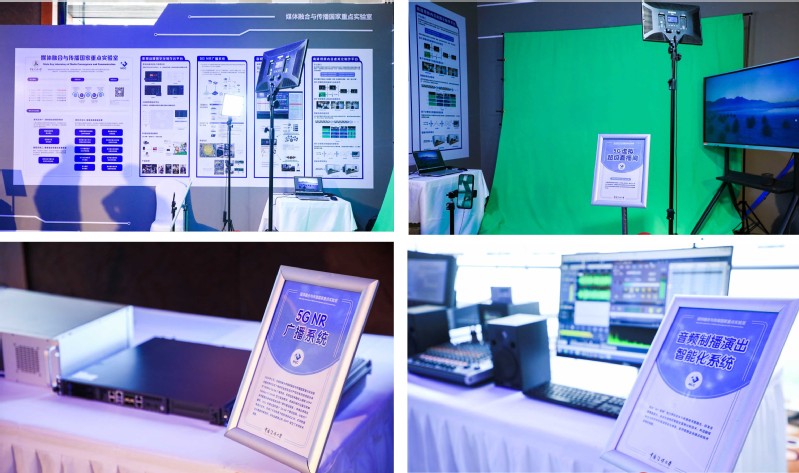 在四家媒体融合领域国家重点实验室设立的主题展区中,我校国重实验室以宣传展板介绍和电视播放相结合的方式,对“影视动漫数字化制作云平台的5G虚拟超级直播间”“高清视频内容虚拟化制作平台”(情智信息科学团队)“音频制播演出智能化系统”(融媒体体系结构团队)“5G NR广播系统”(媒体融合技术与5G智能应用研究团队)等成果进行了现场展示,我校国重实验室专职副主任张远向领导专家作了总体介绍。这些成果颇受关注,许多单位、个人与国重实验室达成了成果转化合作意向。