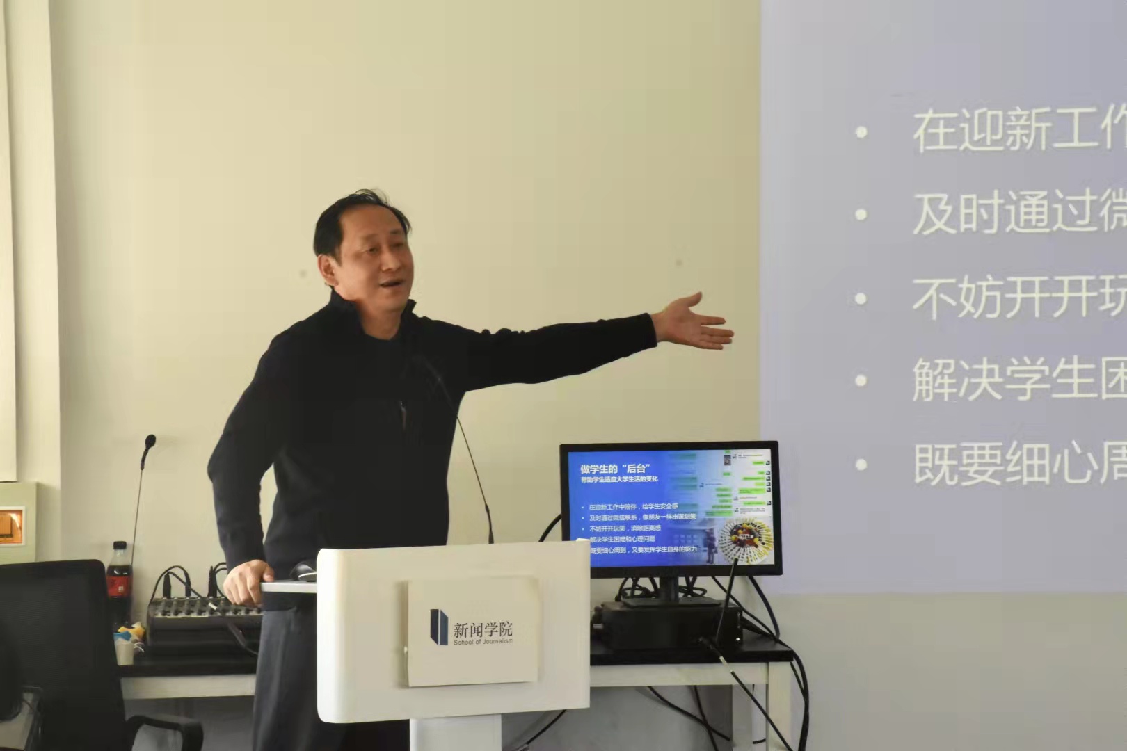 (通讯员 张可馨 摄影 肖雅雯)为加强班主任工作建设,探讨班主任工作的新方法、新路径,积极有效应对学生的心理危机,10月20日下午,新闻学院班主任工作暨学生心理危机的预防与干预交流会在新闻学院502会议室举行。本科24个班的班主任及部分研究生导师参加交流会,交流会由新闻学院党委副书记牛慧清主持。