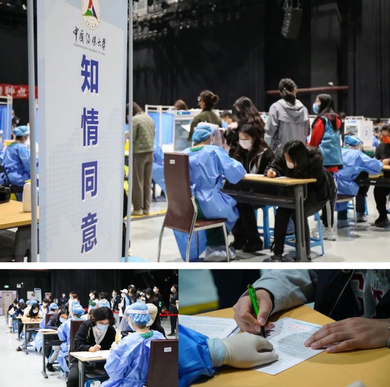临时接种点设置在中传演播馆。10月29日中午,党委书记、校长廖祥忠,党委副书记李众,党委常委、副校长刘守训、王晖,党委常委、校长助理、宣传部长杨懿先后按照程序完成新冠疫苗加强免疫接种。