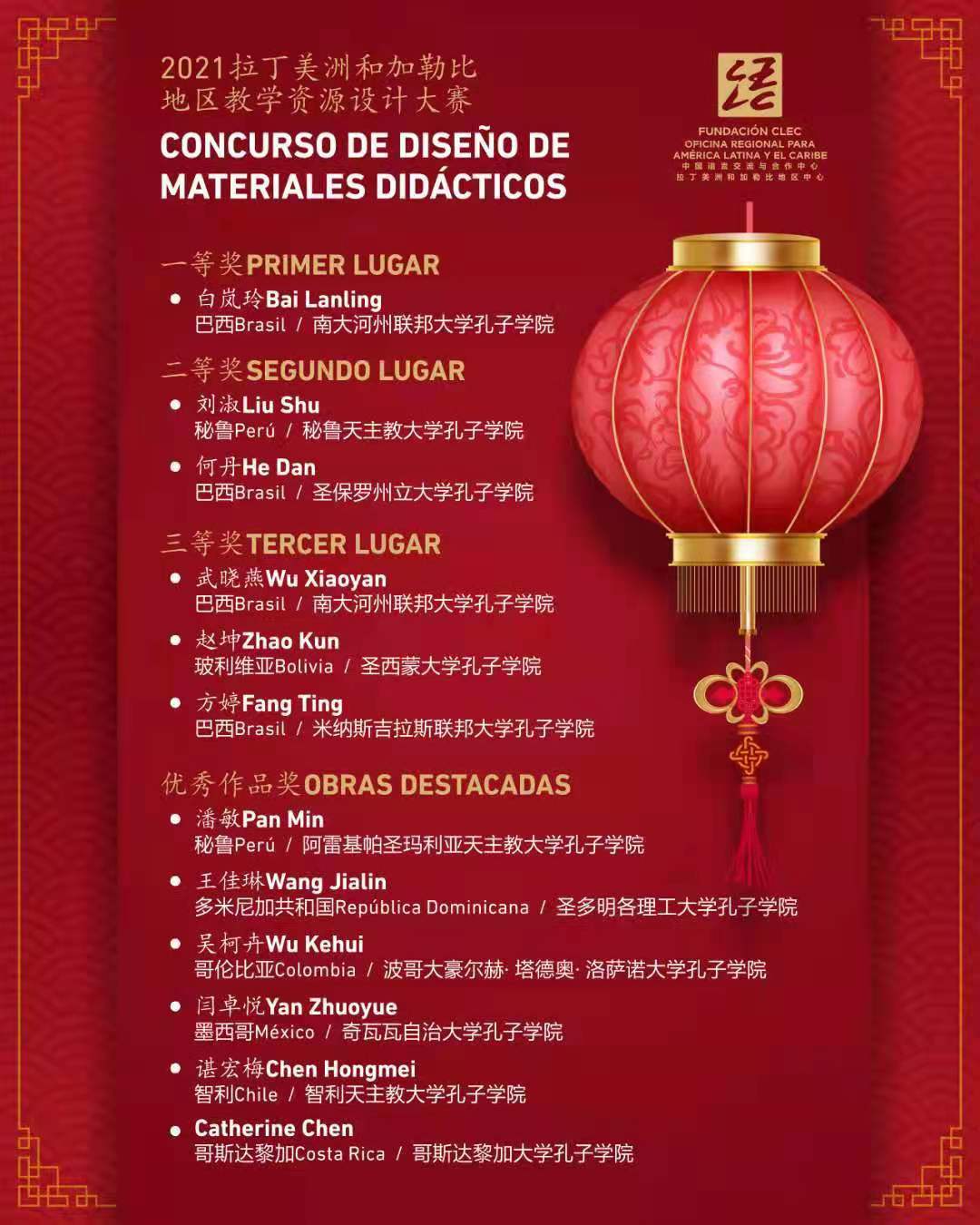 中外语言交流合作中心-拉丁美洲和加勒比地区中心公布的教学资源设计大赛获奖名单