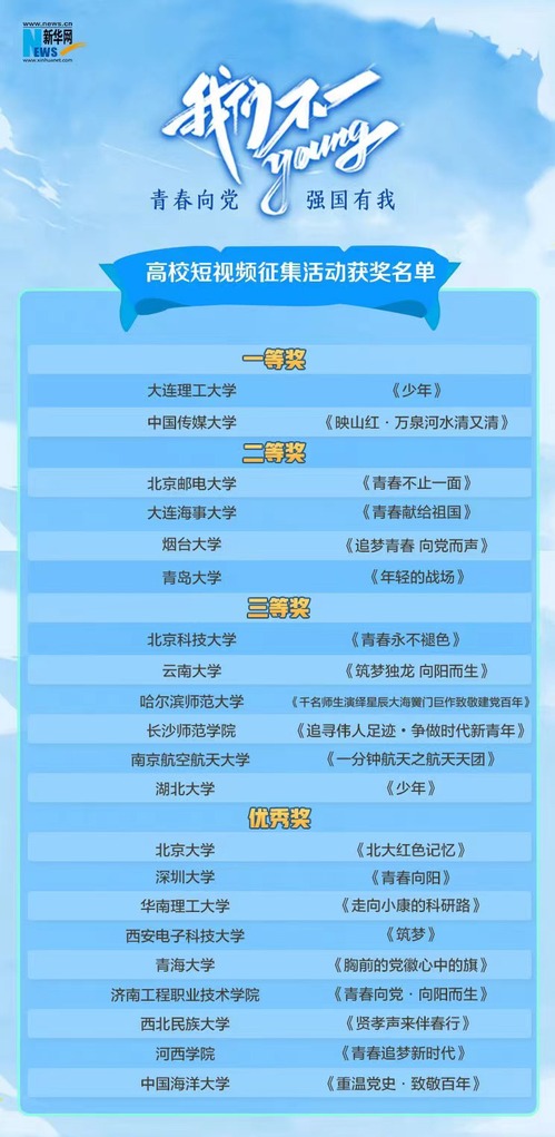 “我们不一young:青春向党 强国有我”高校短视频网络征集活动获奖名单