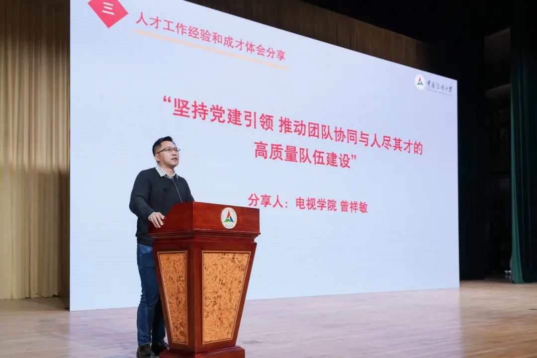 会上,电视学院党委书记曾祥敏作为教学单位代表发言,介绍了电视学院“坚持党建引领,推动团队协同与人尽其才的高质量队伍建设”的特色做法、突出成效及经验思考。