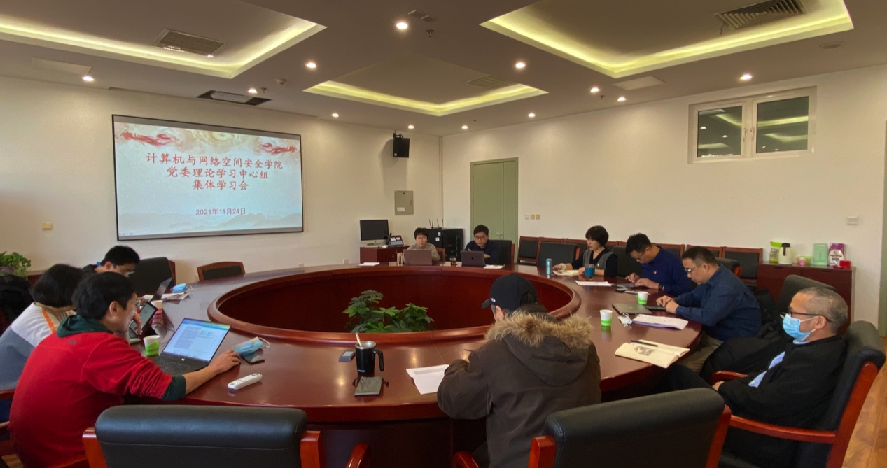 11月24日上午,计算机与网络空间安全学院党委理论学习中心组举行扩大会议,专题学习《中共中央关于党的百年奋斗重大成就和历史经验的决议》(以下简称《决议》)。会议由学院党委书记王淑娟主持,学院领导班子全体成员和系(中心)主任参加会议。