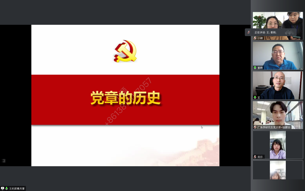 11月24日下午,广告学院党委组织开展《中国共产党章程》线上专题培训学习,邀请机关党委办公室主任王圣宇作“《中国共产党章程》的历史沿革”专题党课。