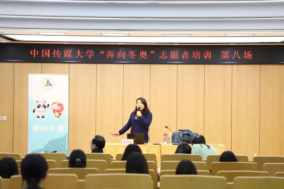 康秋洁老师曾参与过2008年北京奥运会志愿服务工作,结合自身经历,她告诉志愿者们,“每一个志愿者都是赛场外的小小‘外交家’”,要树立服务意识,扎实完成本职工作,勇于展现自信真我,展示出中国青年志愿者的良好风貌。康秋洁老师期待,志愿者们都能在冬奥会上为展现良好的国家形象、冬奥形象助力,讲好中国故事、冬奥故事。