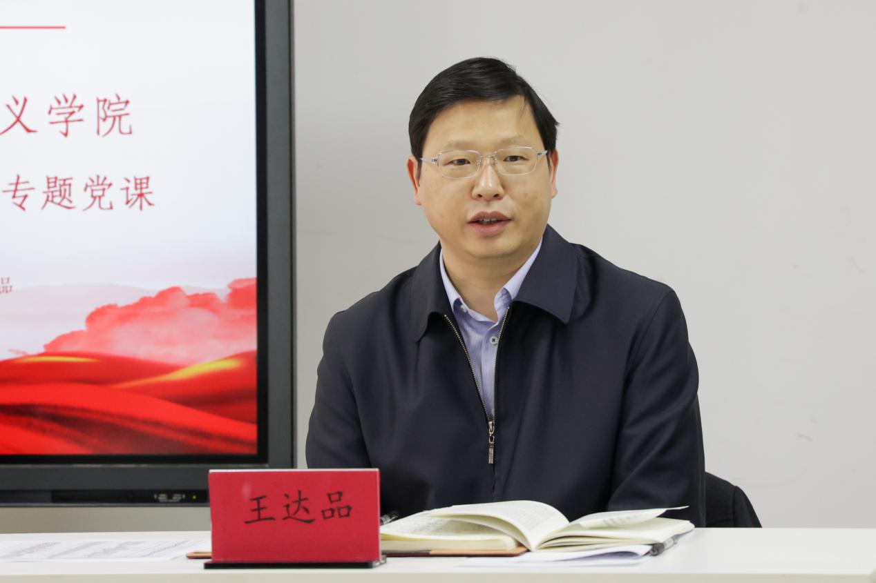 (通讯员 杨钊阳 摄影 连一格 吴滟鹏)12月10日下午,校党委副书记、纪委书记王达品为我校青年马克思主义学院(以下简称青马学院)和马克思主义学院学生党支部讲授形势与政策课暨学习贯彻党的十九届六中全会精神专题党课。青马学院执行院长、校团委书记朱传欣,青马学院执行院长、马克思主义学院院长刘东建,青马学院五期学员、马克思主义学院学生党支部代表参加党课学习。刘东建院长主持党课。