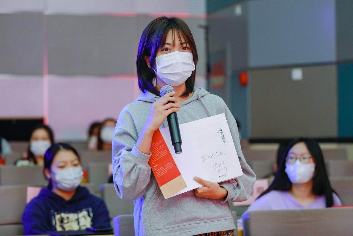 抽取《战争与和平》赠书的戏剧影视学院肖安吉同学说:“廖书记在这本书的扉页上写着‘好好做个读书人’的寄语,我会认真珍惜,激励自己多读书、读好书,成为一个与书香为伴的新时代读书人。”