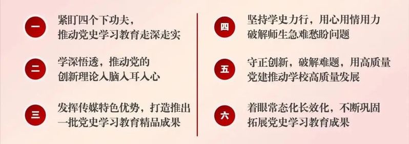 杨学义同志从六个方面对学校党史学习教育给予高度评价。一是学校党委高度重视,组织领导坚强有力,统筹协调落实到位,师生动员广泛深入。二是注重形式内容创新,充分发挥特色优势,倾力打造教育精品,“红色文物青年说”等四部百集系列融媒体作品社会影响深入广泛,“声音中的党史”独具传媒特色,引导师生做好党的喉舌。三是建党百年重大活动服务保障有力,扩大学校社会影响,展现传媒学子崭新风貌,“请党放心,强国有我”的领诵响彻中华大地,言犹在耳,透彻心扉。四是“我为师生办实事”扎实推进,成效显著,学校党委担当作为,建设推出“中传有我”建言献策平台,破解学校历史难题,实现校园“南北合一”。五是党建工作提质增效,全面构建高质量党建工作体系,系统推出“保持上热、加热中温、解决下凉”十二字方案,形成“百根柱子固党建”“三根支柱立党建”的生动局面。六是学习教育善始善终、善作善成,群众满意度高。随机测评中,师生对党史学习教育总体评价好评率达100%。
