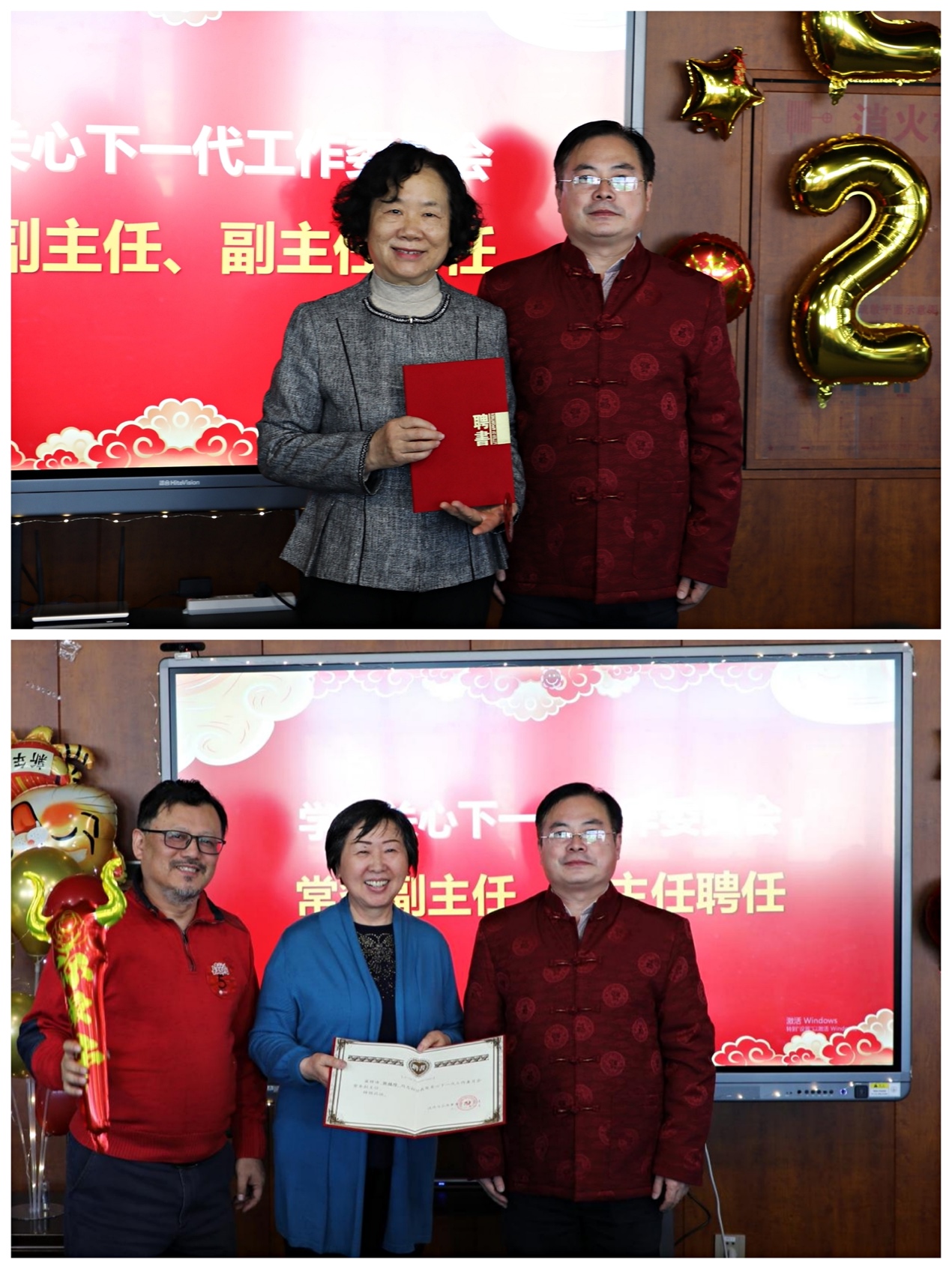 为落实立德树人宗旨,贯彻“三全育人”理念,学院聘请学校党委组织部原部长、原政治与法律学院院长高慧燃教授和原政治与法律学院张桂珍教授分别担任政府与公共事务学院关工委常务副主任、副主任,金勇书记为两位老师颁发聘书。