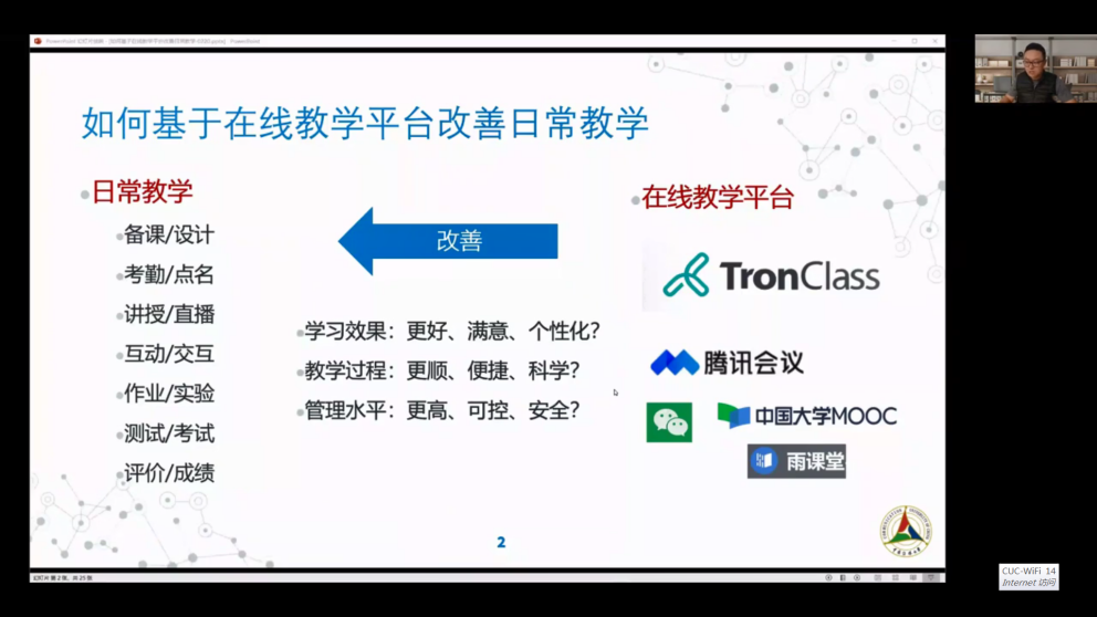 为帮助教师快速适应新平台,教务处牵头策划开展了多场线上教学培训。智园研究院培训师金美玲、我校外国语言文化学院敖缦云老师、计算机与网络空间安全学院曹轶臻老师分别围绕平台基本功能、如何利用平台做好线上教学、如何基于在线教学平台改善日常教学三个主题,为我校教师进行了专场讲座。讲座在关注线上教学期间教学活动的组织与开展的同时,聚焦通过技术赋能提升课堂教学质量。近700人次教师在线聆听。