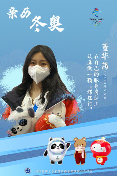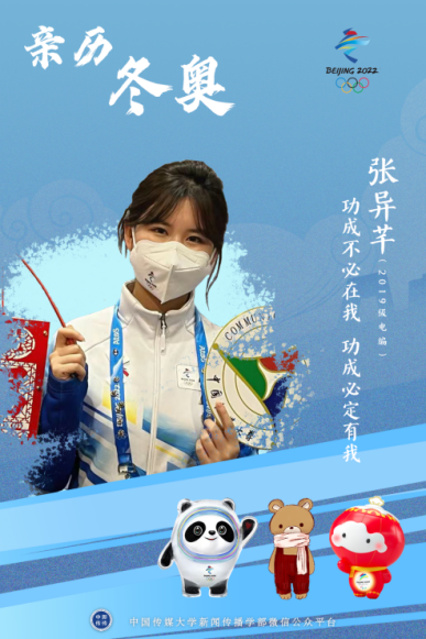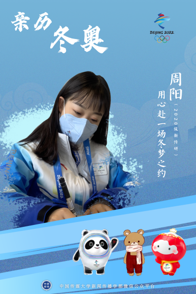 来自2019广播电视学(国际新闻传播方向)专业的吴卓然担任冬奥的转播服务助理,她说:“在‘冰立方’志愿服务的短短半个月,已经收获了不少感动。身边来自各个国家的朋友和同事,不论是初次见面还是已经结识,都能相谈甚欢,这可能就是奥运给人带来的凝聚力,也是对‘更团结’的奥运宣言的最好诠释。”来自2019级广播电视学专业的张煜琳担任摄影运行助理:“我还记得一位瑞士的摄影记者,他从开始的一言不发、沉默、与我们0交流,到每天见到我都会打招呼,临走时刮一下服务台冰墩墩摆件的鼻子。这样的融冰,是这场体育盛会、是这些点滴志愿服务给予我最深的感动。”