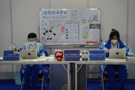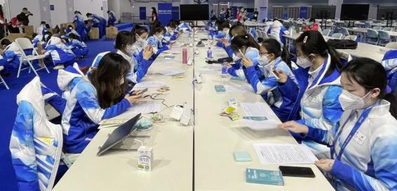 除了在冬奥闭环内参加现场报道的中外记者,距离国家体育场14公里外的北京国际饭店会议中心的2022北京新闻中心的驻地内,同样有一批中外记者,作为冬奥会非注册记者,在这里写下一篇篇闭环外的城市报道。在北京新闻中心,7名电视学院的冬奥城市志愿者在这里,坚守城市采访、新闻发布、安保交通、运行保障等多个岗位,为来自432家中外媒体的1770名记者提供冬奥会举办城市报道的媒体服务,带领中外记者感受温暖洋溢的“北京温度”。