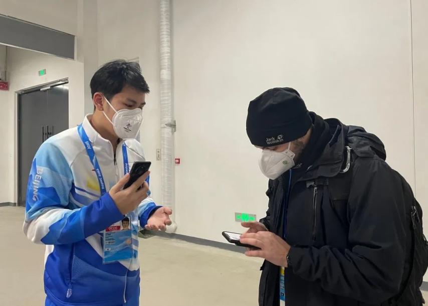 2020级新闻与传播专业研究生周阳和其他志愿者们一起,在主媒体中心接待国际奥委会主席巴赫先生,带他参观科技感满满的媒体餐厅,感受中国“智”造的力量。一位不会英语的NHK女记者向周阳寻求帮助,希望周阳带她去做核酸检测,周阳尝试着用自己仅会的一点日语与她进行交流,不仅完成了核酸检测,还聊到了共同喜欢的运动员,最后还交换了徽章。“用心赴一场冬梦之约,这一段段精彩的回忆,将被我永远珍藏。”周阳说。