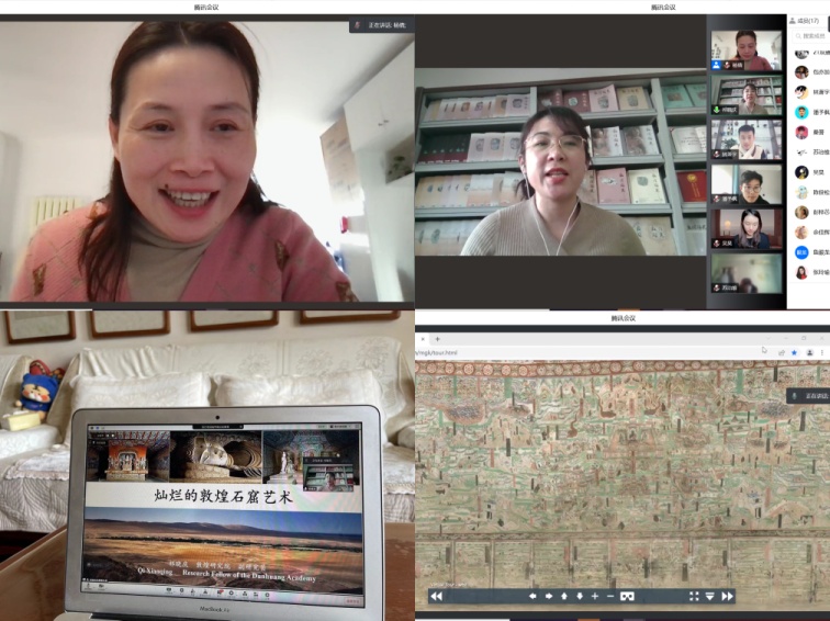新学期伊始,课程主讲教师杨倩副教授为2021级双语播音主持班的学生带来了精彩纷呈的第一单元“四大文明交汇的敦煌莫高窟遗址”,特别邀请敦煌研究院祁晓庆副研究员采用讲授+VR展示技术带领同学们走进实景敦煌的数字天地。同学们在云研学技术支持下激活了远程文博资源,在自主探索中体验了多地共享、师生同屏、置身其中的沉浸效果。在课堂讨论互动环节,从文明遗址到国宝守护人,从文物回归到学术平等交流,大家重温了习总书记提出的“坚守大漠、甘于奉献、勇于担当、开拓进取”的十六字莫高精神。同学们纷纷表示,对世界文明史观产生了浓厚兴趣,对“云观看”文物能够如此细腻逼真发出由衷感叹,更对所肩负的讲好中国故事的神圣使命感到无比光荣。
