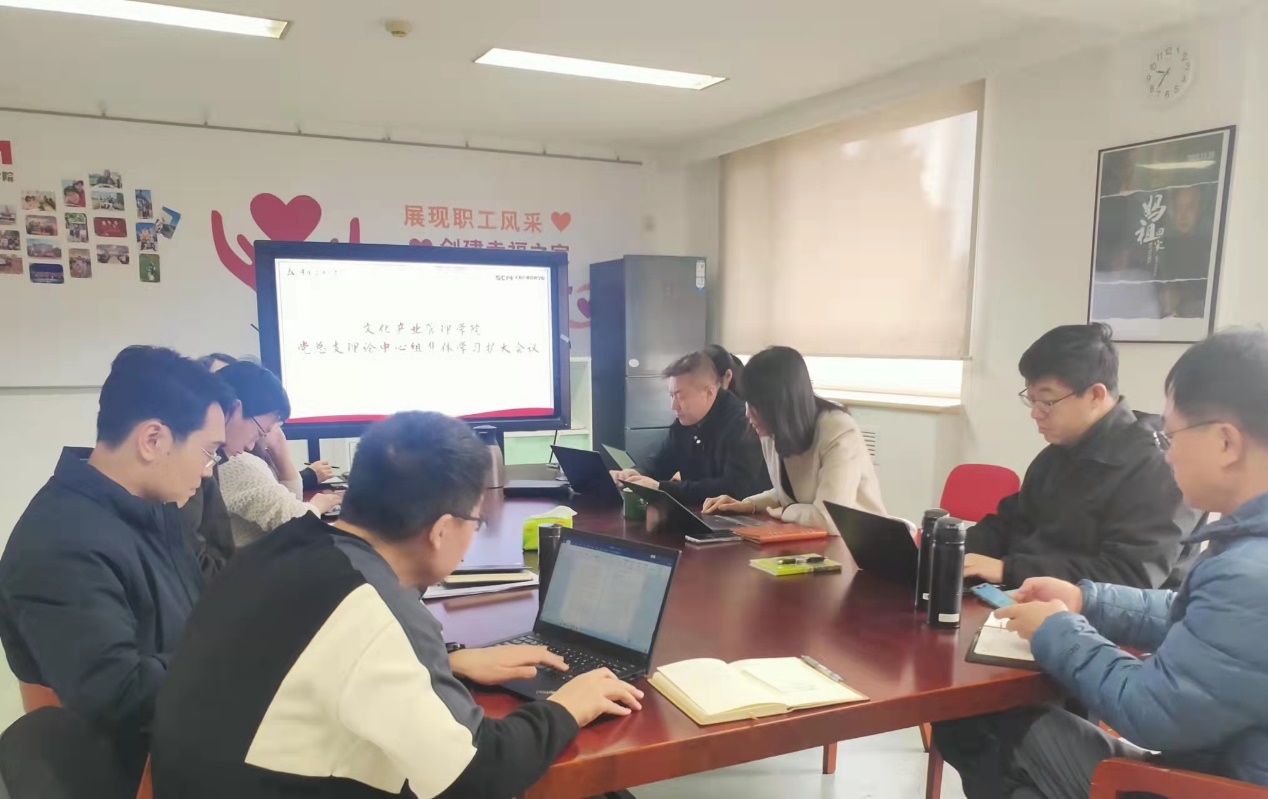 (通讯员 何震)为落实学校党委“百根柱子固党建”部署,解决党建工作和理论学习中基层党支部“下凉”问题,提升学院教工党支部书记的理论素养、统一思想扎实推进学院党建工作, 3月17日,文化产业管理学院党总支在39号楼401会议室召开理论中心组集体学习扩大会议,学院总支书记郇瓛主持会议并领学,执行院长张洪生及全体党总支委员、支部书记和系主任参会。