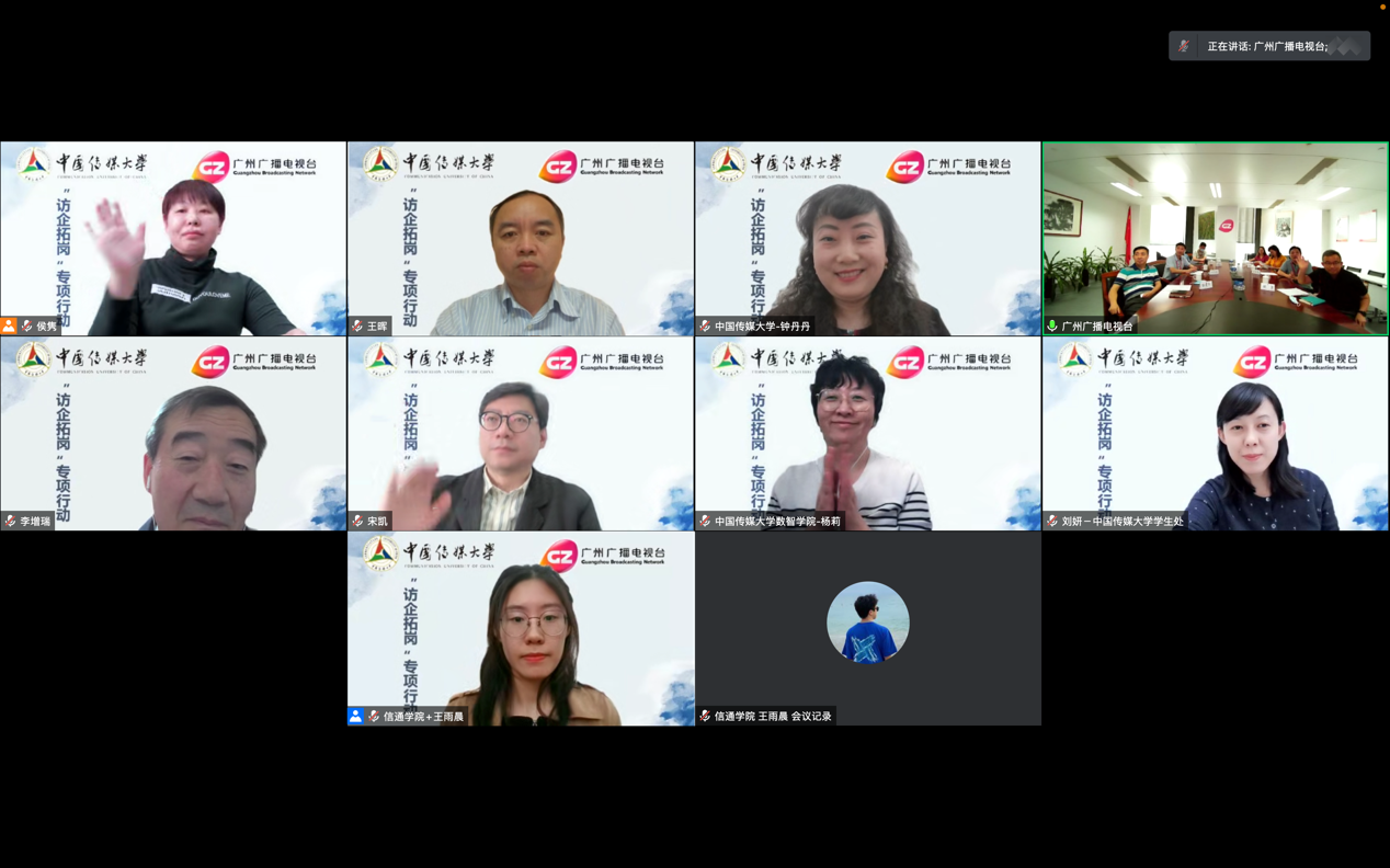 (通讯员 王雨晨 邸国桐)为贯彻落实教育部办公厅关于“书记校长访企拓岗促就业专项行动”的工作部署,深入挖掘就业资源,拓宽就业渠道,4月28日下午,王晖副校长带队与广州广播电视台在线开展“访企拓岗促就业”校台交流会,会议由信息与通信工程学院党委副书记钟丹丹主持。