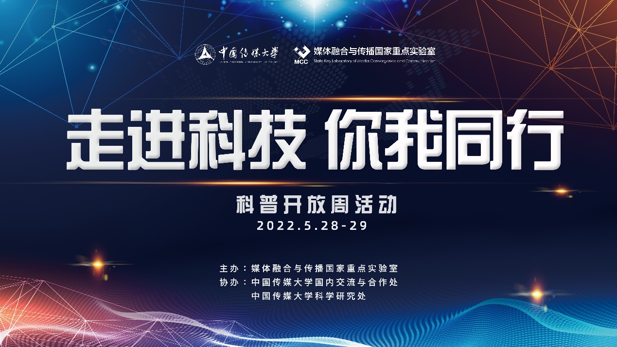 (通讯员 金梦)为大力弘扬科学精神,普及科技知识,彰显科技创新成就,根据科技部、中宣部、中国科协“2022年全国科技活动周”的统一安排,5月28至29日,中国传媒大学媒体融合与传播国家重点实验室(以下简称“国重实验室”)联合国内交流与合作处、科学研究处,成功举办了主题为“走进科技 你我同行”的科普开放周线上直播活动。本次活动在中国传媒大学官方微博、视频号、哔哩哔哩弹幕视频网等同步直播,累计获得约30000观看量和超过40000点赞。