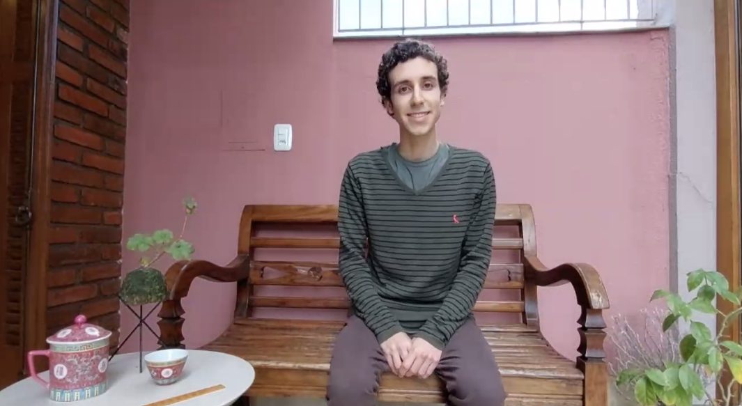 获得本次大赛优秀奖的方聪目前是巴西南大河州联邦大学语言学专业的本科生,同时也一直在南大河州联邦大学孔子学院学习汉语,已通过汉语水平考试(HSK)3级。方聪出众的语言学习能力和标准的汉语普通话发音令人印象深刻,他还对中文歌曲情有独钟。在2020年拉美中心举办的第一届“孔子学院日”中文才艺大赛中,他以一曲《无与伦比的美丽》获得一等奖;在2021年第20届“汉语桥”世界大学生中文比赛巴西预选赛中,他演唱了歌曲《卷珠帘》,并最终斩获二等奖。在本次大赛中,他声情并茂地演唱了电影《大鱼海棠》的主题曲《大鱼》,获得了本次比赛才艺展示环节的第一名。最终方聪以82.225的总分取得了本次比赛的优秀奖。