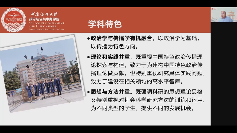 在党委宣传部、融媒体中心等部门的大力支持下,招生处联合相关培养单位开展了“中国传媒大学2022年优秀大学生夏令营直播系列活动”。6月22日至7月9日,新闻学院、媒体融合与传播国家重点实验室、动画与数字艺术学院、文化产业管理学院、经济与管理学院、广告学院、政府与公共事务学院、外国语言文化学院等培养单位陆续通过直播宣讲的形式与考生进行了10场“云上交流”,直播内容包括学院基本情况、研究生课程设置、人才培养特色、就业前景等,帮助同学们充分了解我校研究生办学特色、专业优势及招生政策。