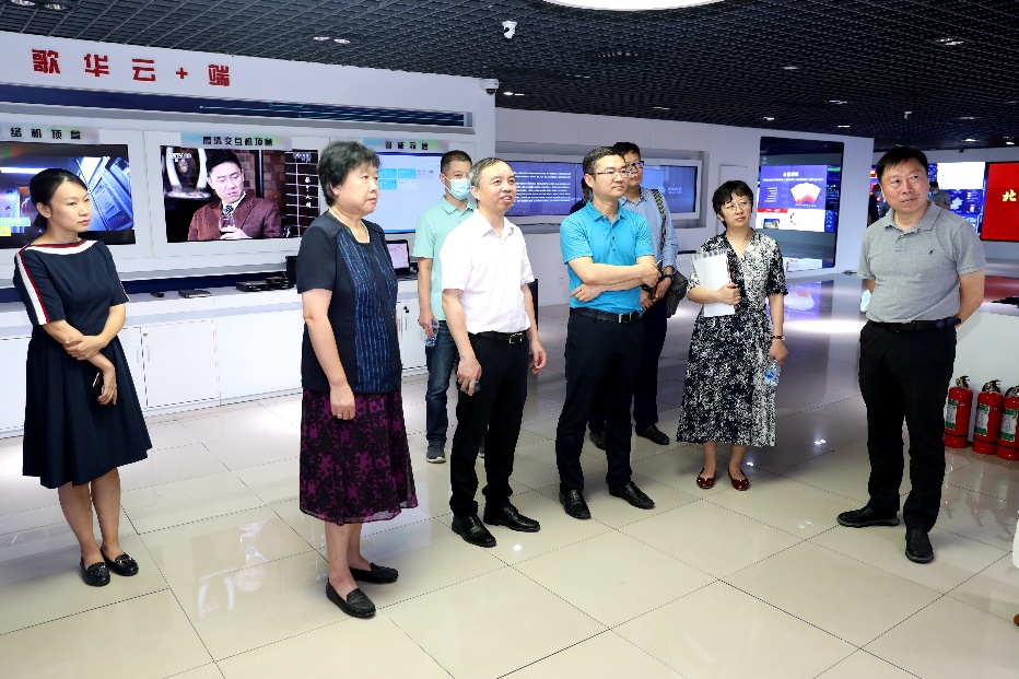 王晖副校长一行首先参观了歌华有线公司的全业务体验厅、总前端机房,详细了解了公司智能终端演进、高清交互平台建设、5G 建设运营、北京云融媒体平台、教育平台建设、政企业务发展等。