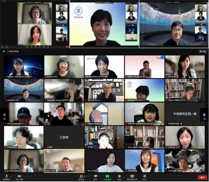 8月6日上午9时,项目展映会在线上顺利举行。三校“亚洲校园计划”项目负责人,我校学科建设与发展规划处处长贾秀清教授、东京艺术大学副校长岡本美津子教授、韩国艺术综合大学动画系主任李廷珉教授分别致辞,祝贺本次联合创作圆满成功。我校动画与数字艺术学院院长王雷,研究生院副院长李楠,国际交流与合作处副处长王文渊、江渺渺,新加坡国立大学企业机构经理王彤及往届亚洲校园计划的指导老师、学生共同观看展映,并进行观影交流。