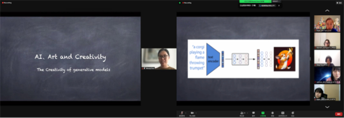 创作期间,项目组邀请我校动画与数字艺术学院智能媒体设计系陈文娟副教授,以“AI绘画——扩展人类创造力”为题进行主题分享,带大家领略前沿科技与艺术结合的力量。