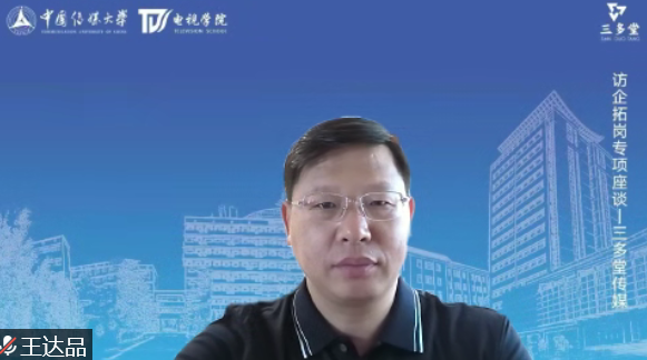 (通讯员 姜龙庆)为深入贯彻落实教育部《关于开展全国高校书记校长访企拓岗促就业专项行动的通知》精神,进一步开拓毕业生就业岗位,深化校企合作,8月23日下午,中国传媒大学党委副书记、纪委书记王达品带队与三多堂传媒进行了线上校企合作座谈。