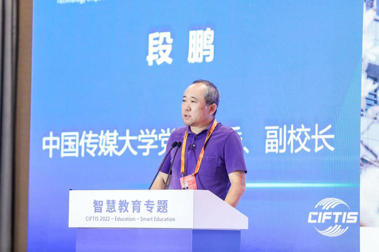 9月2日下午,中国传媒大学段鹏副校长出席2022服贸会教育服务专题论坛并作主旨发言,主题为“国家重点实验室在中国传媒大学学科发展和科学研究中的作用”。段鹏副校长从“一个定位、四个研究方向”“五大特色优势”“四方面标志性成果”三方面,分享了我校在基于信息计算的全媒体信息传播领域的攻坚经验以及对智慧传媒教育工作未来发展的看法。他认为在信息技术飞速发展,全球教育服务数字化转型加速的背景下,传媒教育工作者正在通过理念更新、模式创新、技术变革等途径迎接新时代高等传媒教育发展面临的机遇与挑战,推动教育服务贸易发展。