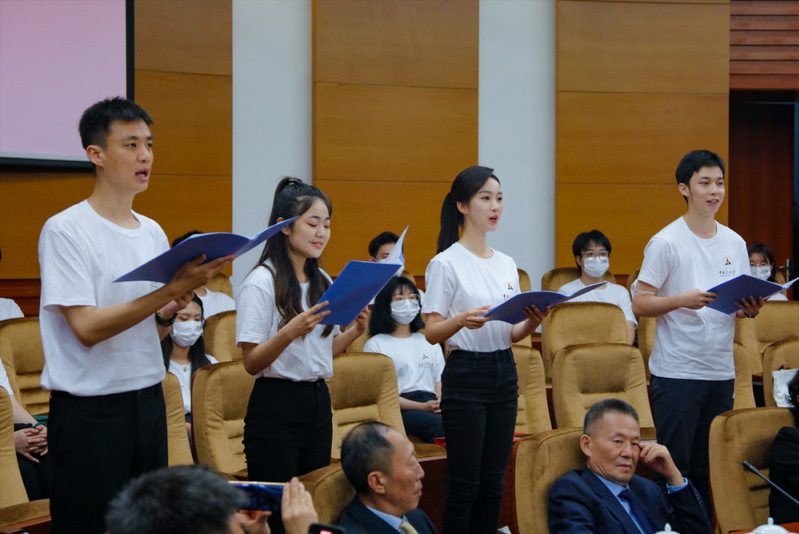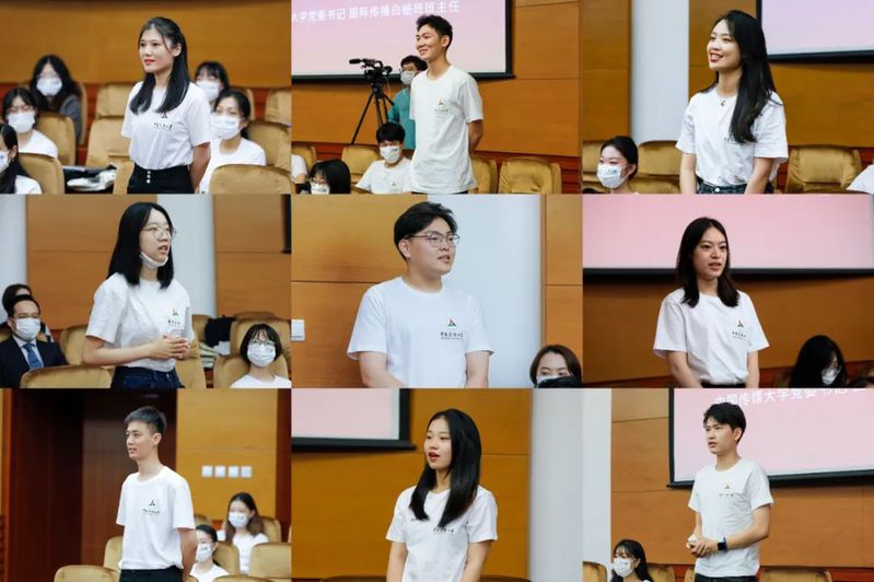 在开班式的最后,白杨班四名学生代表声情并茂地朗诵了《新征程,新一步》,以此来表达自己投身于国际传播事业的远大理想。全体白杨班同学一起喊出“请党放心,强国有我”,新时代的声音响彻会议厅。