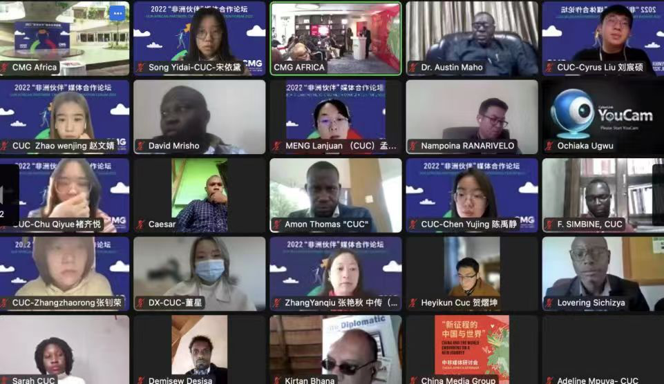 (通讯员 陈远 梁凯瑞)11月16日,由中央广播电视总台非洲总站和我校人类命运共同体研究院联合举办的2022“非洲伙伴”媒体合作论坛召开,论坛的主题是“新征程共谋新发展,中非媒体合力提升全球传播力”。张树庭校长在开幕式上发表了视频致辞。来自非洲近30个国家的媒体高层、记者、高校传媒学者等参加会议。我校人类命运共同体研究院全体教师、传播研究院“发展中国家国际传播” 硕士项目非洲留学生、国别与区域传播实践方向硕士生、国际传播白杨班部分硕士博士生近50人参会。论坛还发布了由人类命运共同体研究院非洲传媒研究中心联合非洲高校完成的《中央广播电视总台对非传播年度调查报告(2021-2022)》。