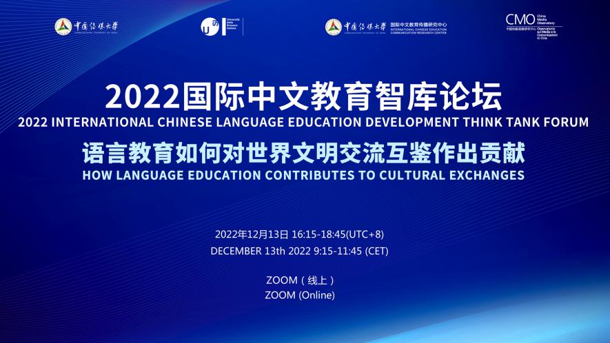 (通讯员 王晓芳 王誉锦)2022年12月13日,由中国传媒大学主办,中国传媒大学国际中文教育传播研究中心、瑞士卢加诺大学媒介与新闻研究所联合承办的2022国际中文教育智库论坛于线上召开。来自中国传媒大学、瑞士卢加诺大学、英国兰卡斯特大学的专家参加本次论坛。活动由中国传媒大学政府与公共事务学院院长、中国传媒大学国际中文教育传播研究中心副主任周亭教授主持。